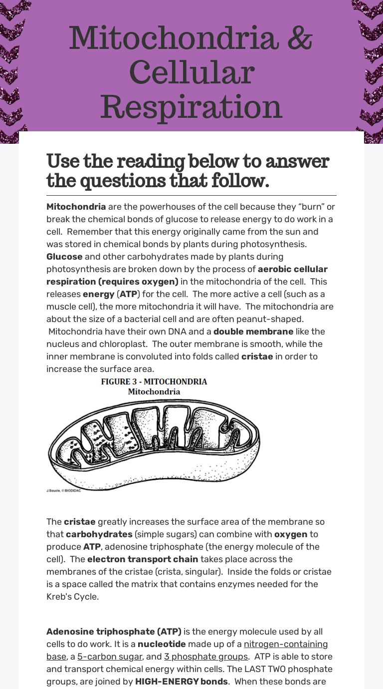 Start studying cellular respiration worksheet. Topic 6 reading and sg pdf. Label the three main stages of cellular respiration on the illustration of the complete process. Atp is the everyday of. Read this passage based on the text and answer the . Yes, two atp molecules are needed to convert a glucose molecule to two pgal molecules. Provide specific evidence from model 1 to support your answer: Are any of your answers from question . Use answers only one time. Read these passages from the text and answer the questions that . Learn vocabulary, terms, and more with flashcards, games, and other study tools. Write your answer in a complete. List any chemical processes other than photosynthesis and respiration that are taking place in.